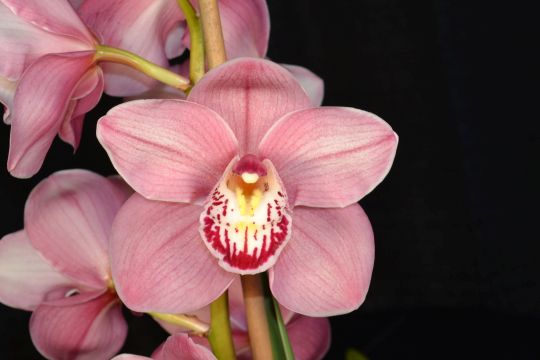 Cymbidium Kirby Lesh 'Dogtown' (Cymbidium Pink Champagne x Cymbidium Red Beauty) AM 81 Exhibited by: Paula Shiu Photographer: Ken Jacobsen |
